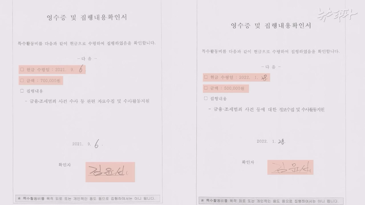 - 재미있는(?) 것은 이렇게 세금 오남용이 버젓이 일어나고 있는데도, 그 어떤 검사도 이에 대해 지적하거나 항의하지 않았다는 거예요.😅 뉴스타파가 입수한, 명절을 앞두고 지출된 특활비 영수증에는 대부분 수령한 검사의 서명이 선명하게 남아 있었습니다.